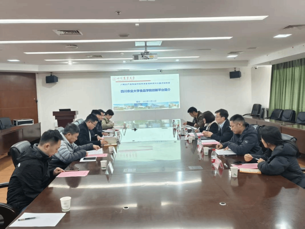 为推动食品科教与产业前沿深度融合,探索产教融合新路径,12月15日,泸州红高粱现代农业开发有限公司总经理张庆良、副总经理陈安静、有机部部长晚小帅、产业部部长饶强和科研管理王小勤一行莅临tyc5997太阳集团食品学院开展座谈交流。食品学院副院长张清教授、畜产与发酵食品加工及安全团队刘书亮教授、刘爱平教授、李建龙博士、胡凯弟博士和赵宁博士参与交流。