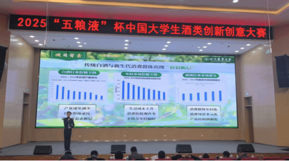 本次大赛以“浓香新世代 青春创未来”为主题,包含品酒比赛、包装营销创意比赛和酒类创新比赛三大项目,通过校级区域赛、省级片区赛的层层闯关,最终500名参赛选手汇聚宜宾展开全国总决赛的精彩对决。学校选派推荐的20名师生到现场参赛,品酒赛道5名选手历经理论笔试与实操考核的双重考验,展现出精准的感官鉴别能力与专业理论储备。在竞争激烈的酒类创新赛道,5支晋级团队紧扣大赛主题,立足五粮液“五粮和美”文化,围绕健康新品研发、酿酒科技升级、品牌年轻化等方向展开创新设计,凭借扎实的科研基础与新颖的创意构思脱颖而出。包装创意赛道的3支晋级团队则结合五粮液品牌内涵与现代设计潮流,通过创意文案与现场路演诠释作品的设计巧思。