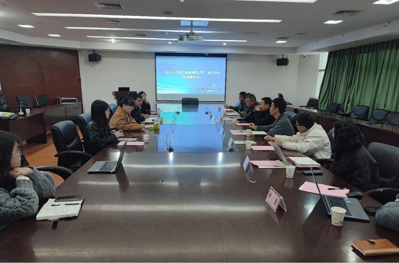 3月2日上午,食品学院与四川五丰黎红食品有限公司开展校企合作技术攻关座谈会。四川五丰黎红食品有限公司总经理杨荣、副总经理李刚、程杰、李鹏飞、品管部文堂军、生产部宋智力、研发部幸勇、人力资源部陈小燕,食品学院副书记汤瑞瑞、副院长张清、食品营养与健康系刘韫滔教授、曹林博士及研究生参会。