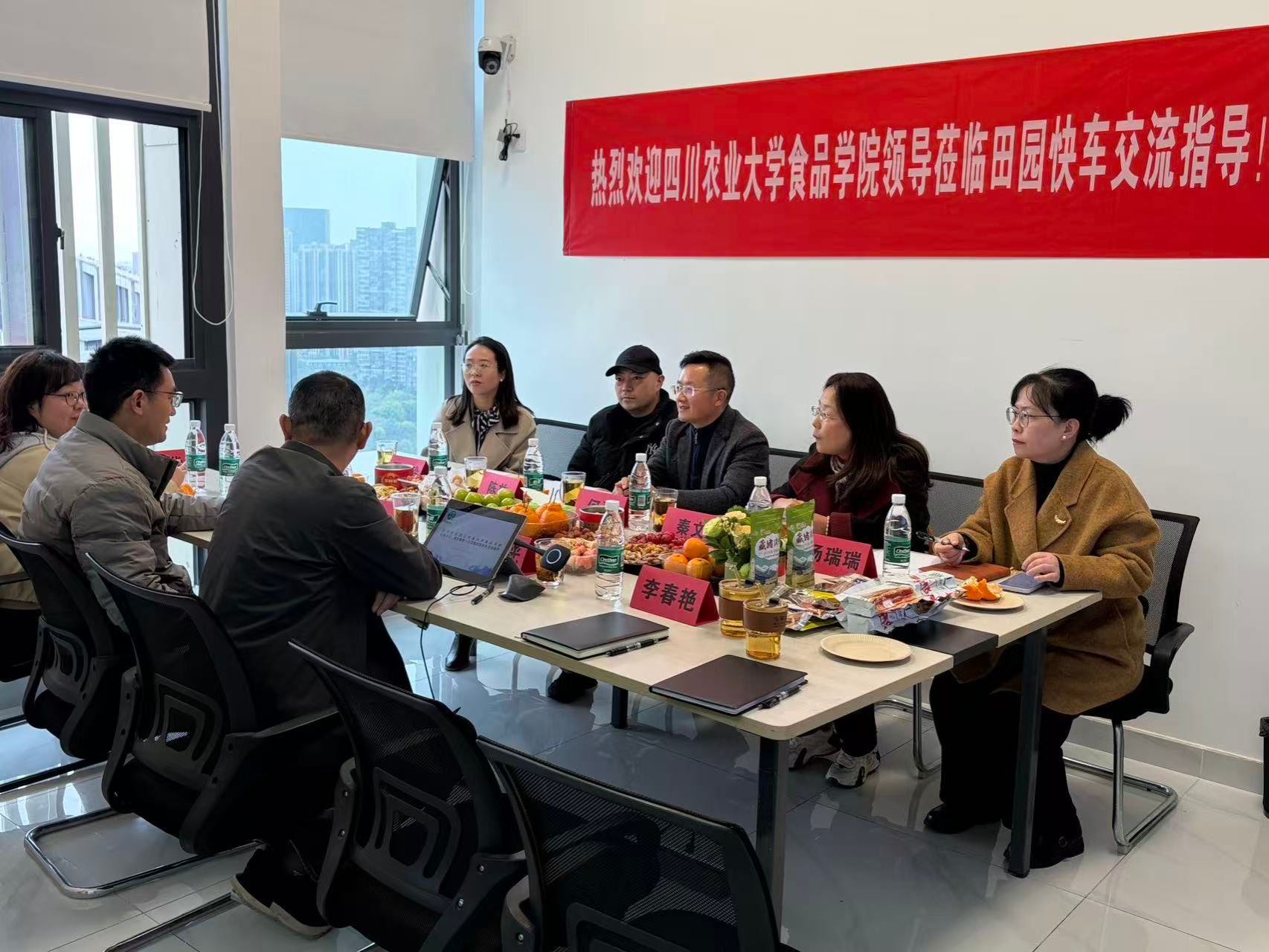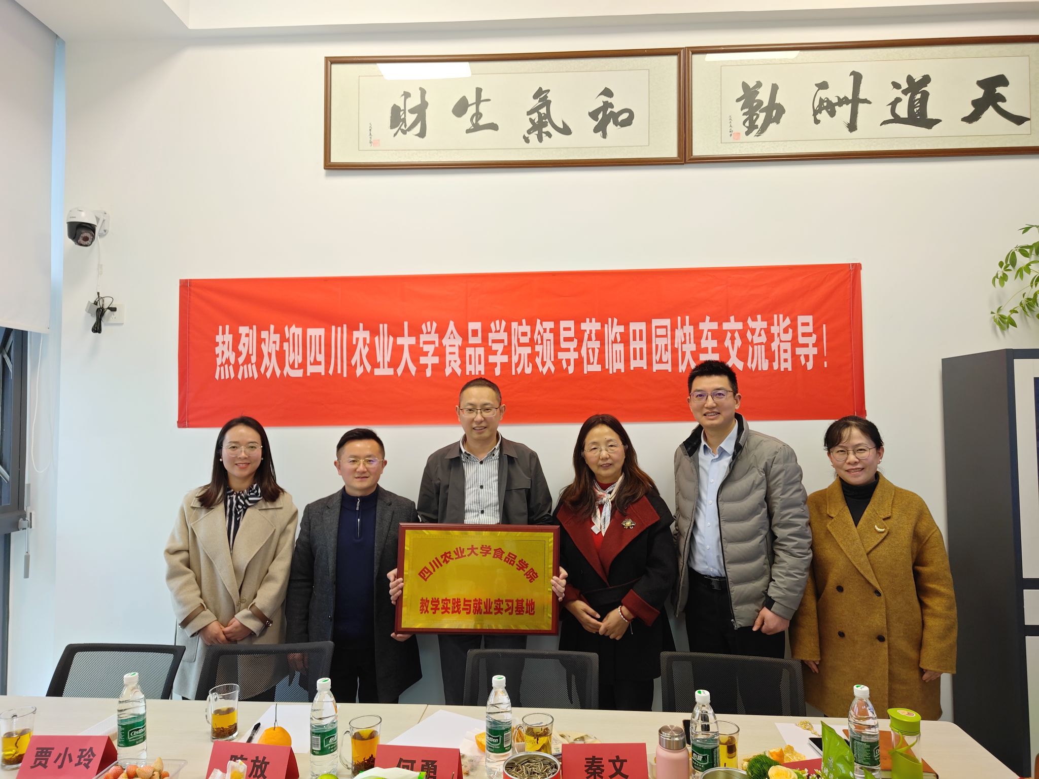 为整合食品行业校友企业优质资源,凝聚校友力量共贺tyc5997太阳集团120周年华诞,3月18日下午,食品学院党委书记何勇、党委副书记汤瑞瑞、农产品采后处理及未来食品科技团队负责人秦文教授、成都艾家食品有限公司销售副总贾小玲等一行5人,赴校友企业田园快车(成都)科技有限公司开展座谈交流,并挂牌共建食品学院教学与就业实习基地。