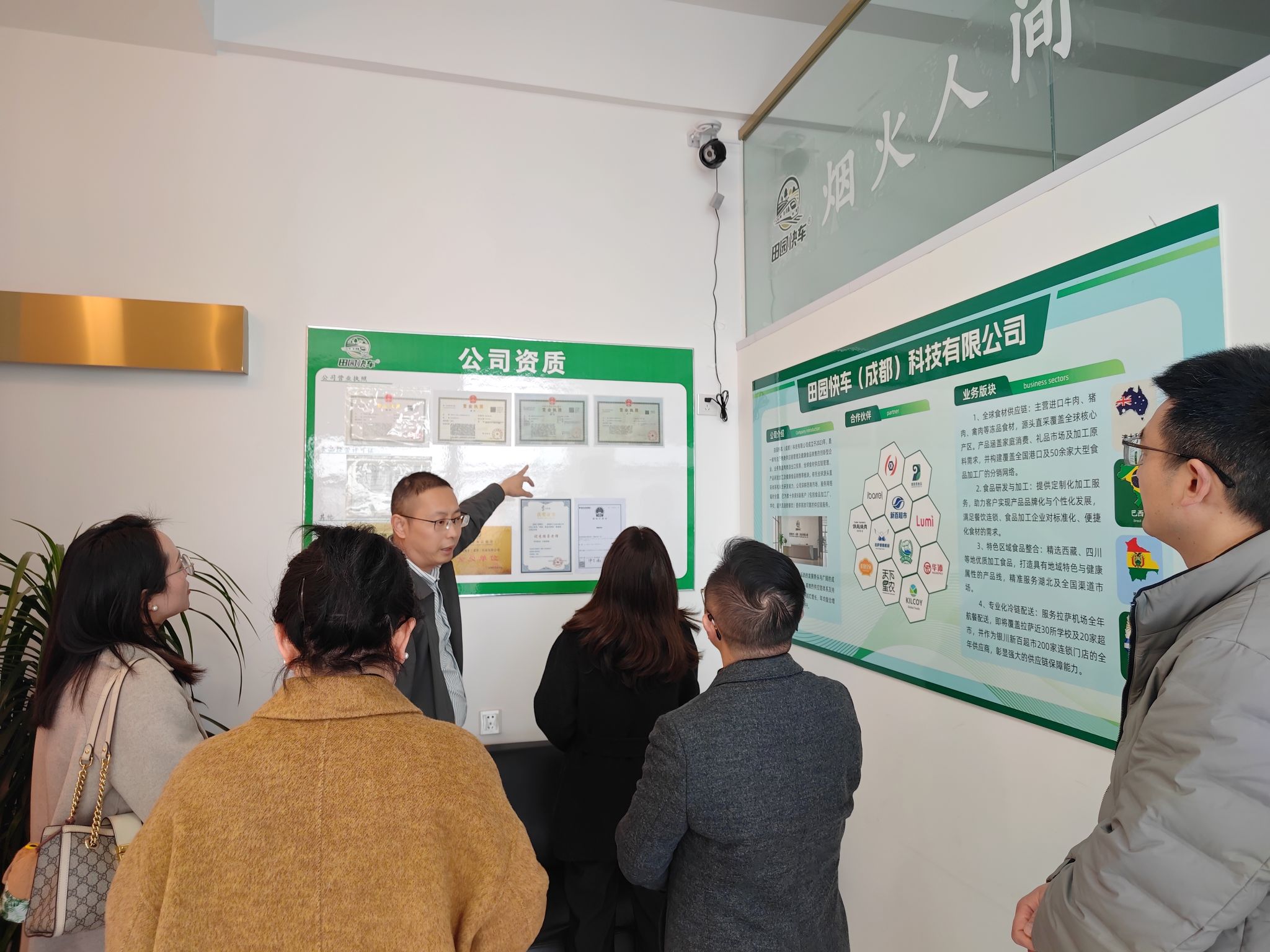 田园快车(成都)科技有限公司总经理易曙光对学院一行的到访表示热烈欢迎,并详细介绍企业发展历程、核心业务布局及产业发展规划。作为聚焦肉类供应链领域的企业,该公司深耕食材安全供应与品质管控赛道,搭建起从种植养殖筛选、初级加工到终端配送的全链条溯源体系;凭借严苛的品质标准,为航空配餐、团餐等领域提供优质服务,发展势头强劲,与食品学院学科方向、科研优势高度契合。