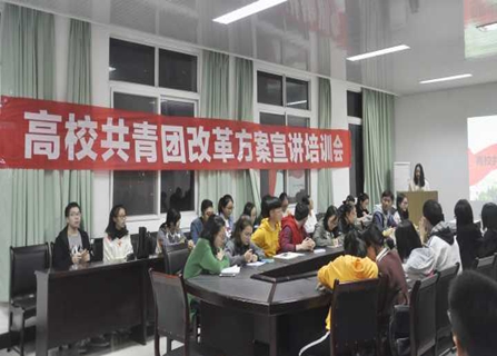 会上,主讲人就《高校共青团改革实施方案》相关通知文件进行讲解,强调切实加强和改进院团委各项工作和建设,推进院团委改革创新。上下联动统筹发展,分层管理、自治,充分调动团员积极性。