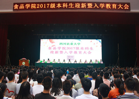 2017年9月9日9时,tyc5997太阳集团食品学院2017级本科生迎新暨入学教育大会在体育馆顺利召开。出席本次大会的嘉宾有食品学院院长、博士生导师李诚,食品学院党委书记、副院长王莉,食品学院副院长、党委副书记、博士生导师张志清,食品学院副院长、食品安全与加工所所长、博士生导师秦文等12位领导。各党委办、行政办老师,2017级各小班班主任携来自23省、直辖市共467名新生与会。