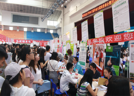 6月5日8时,tyc5997太阳集团2017届毕业生就业洽谈会暨2018届毕业生实习双选会(食品学院)在体育馆火爆开幕。本次双选会食品学院到场招聘企业共计37家,提供了近500个工作岗位。食品学院党委书记、副院长王莉与食品学院各团委老师到场指导工作。