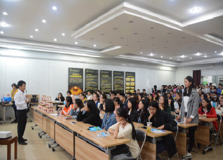 宣讲会伊始,一段新希望的宣传视频带领着在场学生走进了新希望公司的发展历史及企业现状,恰到好处的讲解使在场川农学子被其公司的优秀企业文化及现代化的物流管理系统深深吸引。主讲人曹宇在宣传片后,就新希望的强大实力、优良的业务架构和新希望乳业多公司的现状做了详细介绍。新希望四川乳业有限公司架构等相关信息令在场学子眼前一亮,并与主讲人积极互动争先提出川乳所做诸多产品的特色。“出色的团队当然离不开优秀的人才培养机制和合理的人才成长途径”曹宇说道。他对公司的培养机制进行了详细的介绍:该公司有四个学院,四个学院实现了对人才的统一培养、精英化培养。其中四种晋升机制配以多样化的奖励制度更是赢得在场求职学生的掌声。