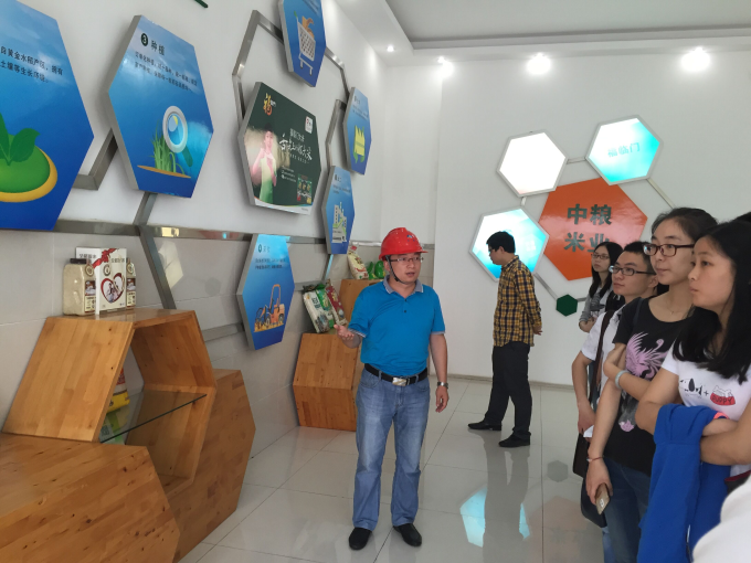 首先,在该公司负责农业产业化和日常接待事务的相关主管陪同下,全体同学对中粮集团的公司文化、产品类型、品牌效应、辐射范围等方面进行了深入的了解;然后该负责人又将中粮新津的厂区布局和主要业务进行了详细的介绍。最后,同学们又对稻谷制米和小麦制粉两个加工工艺进行了参观,在部门经理的详细讲解下,大家对这两条生产线及其工艺要点有了立体的认识,理论知识有了实践指导。