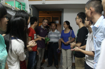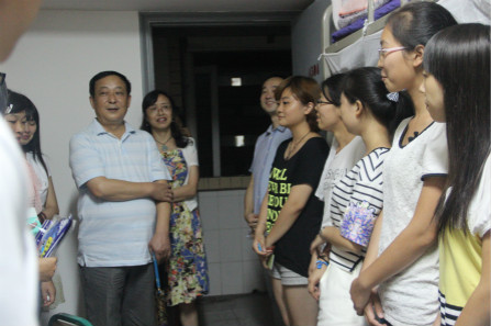 9月13日晚,院长蒲彪、党总支书记王莉、副院长秦文率系室主任、专业负责人、辅导员以及全体新生班主任深入寝室看望慰问2014级新同学。