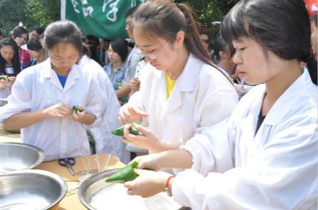 活动现场,各班还进行了包粽子的速度比赛,来自食品科学与工程12级1班的罗敏同学以5分钟包制10个合格粽子的成绩获得第一名。随后,经过现场上千名挑剔“吃货”的品尝与投票,最终食品科学与工程(企业生产管理方向)2013级2班设计制作的“紫金之巅”系列粽子问鼎一等奖,食品质量与安全2012级1班、食品科学与工程教育2012级1班等班级分别获得二、三等奖。
