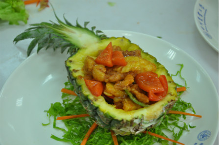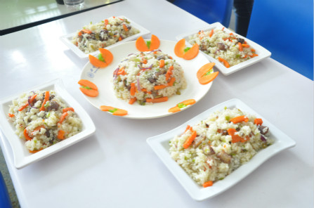 10支入围决赛的队伍分为两组依次进行现场烹饪比赛,各个队伍都展现了自己独具特色的家乡菜,包括东北口味的锅包肉,川味的剁椒鱼,广味的菠萝肉,新疆风味的手抓饭等等,引来了一大批美食爱好者的围观,现场气氛热烈。专业评委和学生评委根据菜肴造型、味道口感、营养口感、食材特色等五方面对各参赛作品进行现场品尝、评选,最终来自美丽新疆的“回疆的诱惑”团队技高一筹,在食材搭配、膳食营养及地方特色展示、厨技比拼等环节均表现突出,获得了本次比赛的一等奖。“707小当家”团队也不甘示弱,紧随其后,以饱含独特的重庆风味“宫廷泉水鸡”作品荣获二等奖。