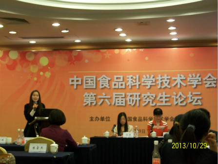 日前,中国食品科学技术学会第十届年会暨第七届中美食品业高层论坛在南京举行。食品学院行政办主任余凯,本科生向小凤、黄文部、陈海、郭威等应邀参加。根据组委会的安排,向小凤作为“李锦记杯”学生创新大赛的获奖代表在会上发言,并在研究生论坛上与美国食品科技学会前主席John Ruff以及浙江大学、江南大学、上海海洋大学等高校的师生一起交流了参赛心得。
