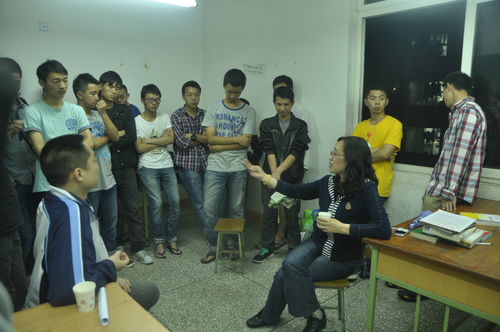 在寝室举行的座谈会上,王莉首先向同学们说明了此次我校的受灾情况及宿舍调整原因。希望同学们理解配合,并积极、主动融入新的宿舍环境中,处理好室友关系,共同营造一个温馨、和谐的学习生活环境。她还向学生介绍了学校抗震减灾整体工作情况,通报了经国家地震局和住建部专家对学生宿舍等公共建筑所作的安全性应急评估情况。她还结合“512”汶川地震的亲身经历告诉大家,420芦山地震的余震强度不会超过主震且呈衰减趋势,不会影响到同学们的正常学习生活,希望大家积极调整心态,对可能遭遇的余震,大家应理性、科学、安全、有序避震,切不可采取跳楼、跳窗等极端方式。最后,王莉希望大家尽快把心思重新放到学习上,恢复正常的学习生活秩序。