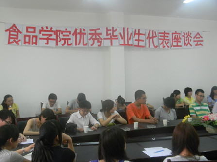 6月19日下午,食品学院在三教召开优秀毕业生代表座谈会。参加会议的有食品学院优秀毕业生代表及部分2009、2010及2011级学生。
