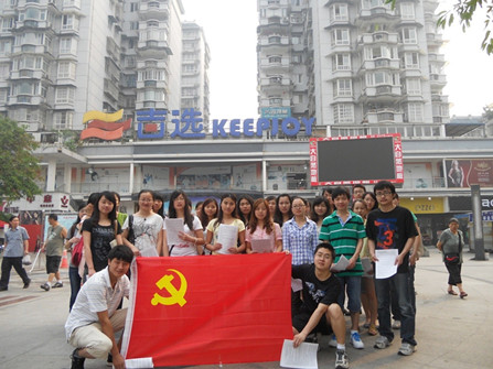 5月19日,食品学院食品科学与工程2009本科生党支部在雅安市部分社区开展了“心系社会,食品安全知识宣传”的党日活动。活动作为预备党员“双向目标”中期考核的内容之一,主要考查预备党员组织策划党日活动的主动性、积极性,鼓励学生党员利用自己的专业知识向市民宣传、普及食品安全知识,纠正社会上存在的一些不科学的饮食习惯和认识误区。该支部部分正式党员和全部的预备党员参加了此次活动。