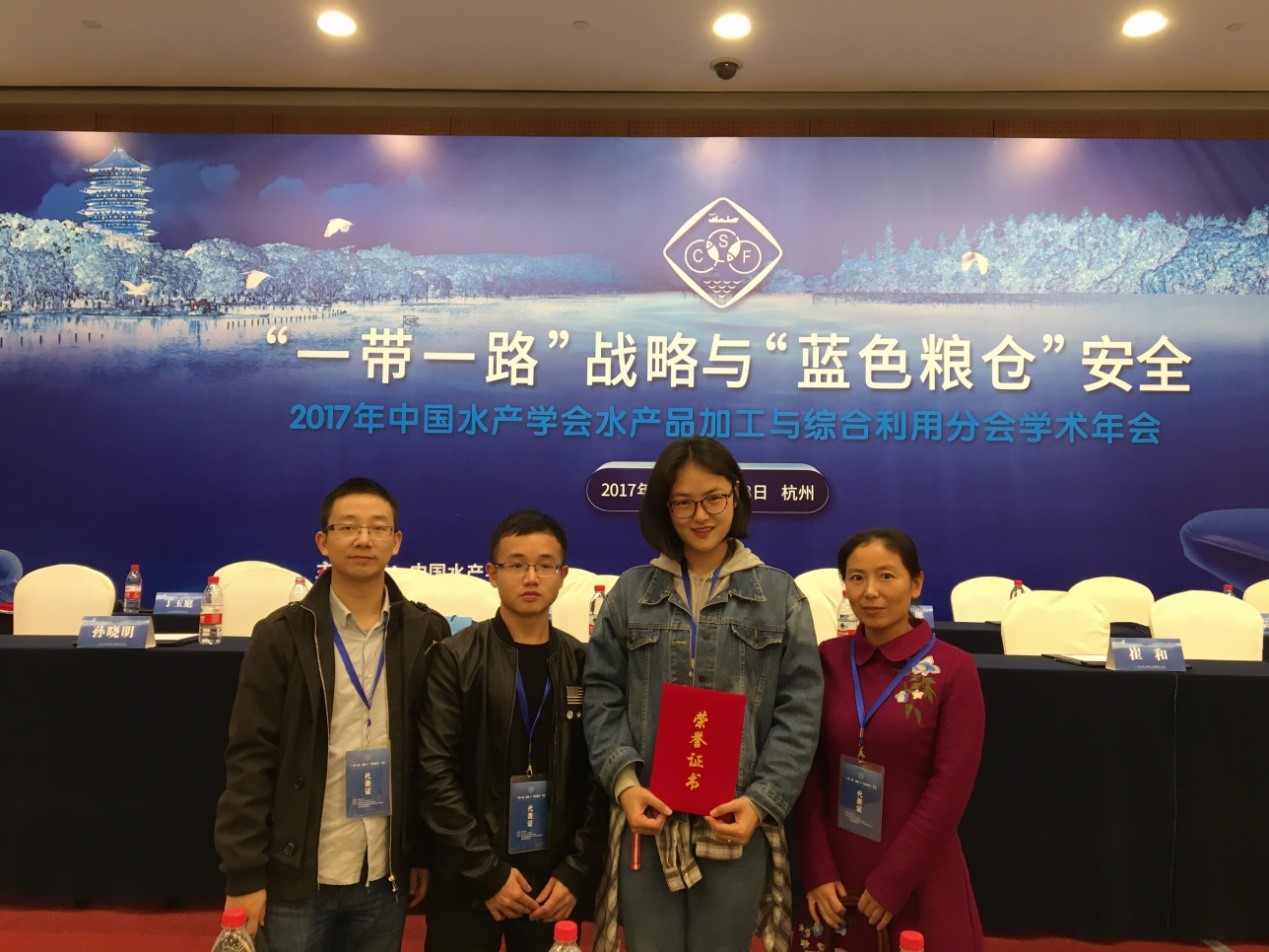 11月16日-19日,2017中国水产学会水产加工与综合利用分会学术年会在杭州召开。我院水产品加工及贮藏工程学科的李树红副教授、李美良副教授等2位教师及2位研究生参加了此次会议。