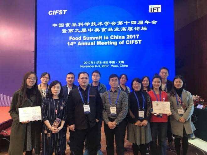 食品学院本科学生刘雨萱、张若瑶等完成的创新产品“藤椒起凤酱”荣获2017年度中国食品科学技术学会李锦记杯学生创新活动三等奖,戴卓君、徐佳等本科学生完成的“虾仁腐乳酱”荣获优秀奖”。食品学院刘韫滔副教授的学术论文“13种牛肝菌多糖的表征及其抗氧化活性”作为大会poster进行了展示。
