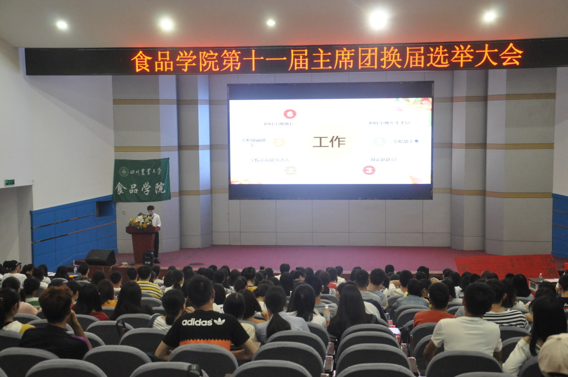 5月4日晚七时,食品学院团委学生会第十一届换届选举在逸夫楼报告厅举行,学院团委老师、第九、十届团委学生会主席团、各小班代表以及校学生执委会代表齐聚一堂,观候选人风采,投宝贵一票。