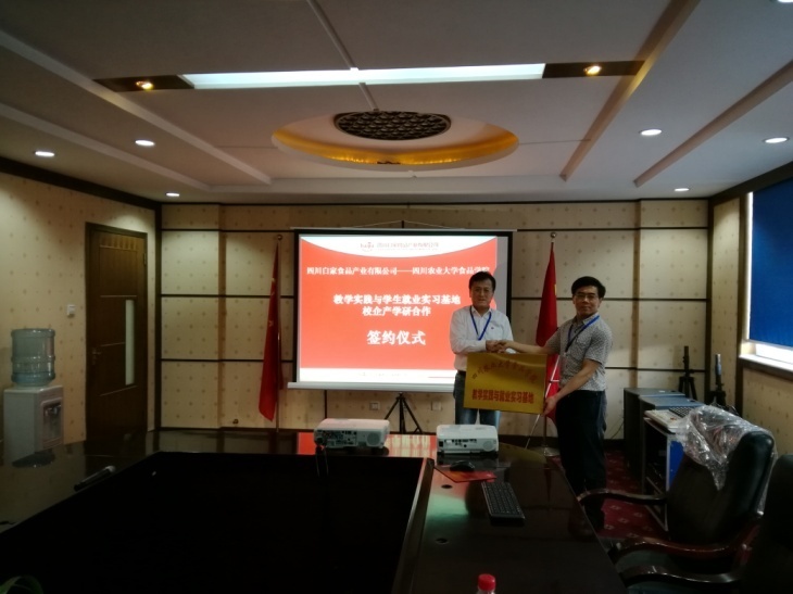 在王老吉大健康产业有限公司的签约授牌仪式上,王老吉乐武华副经理及集团的其他领导、中粮集团袁国洲副总经理等就本科生教学实习、人才培养、基地建设和产学研合作等进行了热烈的交流和讨论,在与中粮(成都)粮油有限公司的签约授牌仪式上,一行人参观了公司的面粉生产线,做了现场技术指导。