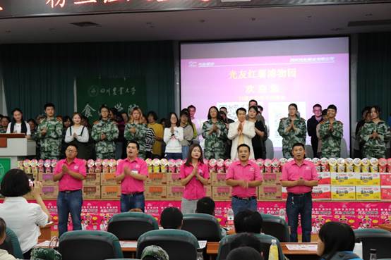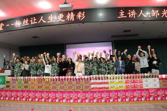 此外,邹光友先生还将自己管理团队的光友三宝分享给大家,“声音洪亮、甜蜜微笑、动作夸张”,并通过与现场互动让同学们积极参与其中。现场观众积极回答问题,上台表演舞蹈,并获得了光友薯业的特色产品。通过本次食苑大讲堂,与会学子不仅了解到了食品行业优秀创业者的奋斗经历,更体会到了积极的人生态度,看到了勇往直前的决心。