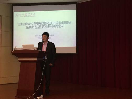 在会上,食品学院张清副教授作了题为《川明参醇提物在煎炸过程中对油品质提升作用的研究》的专题报告,介绍了近年来在油脂煎炸过程成分分析的研究工作和采用植物醇提物在煎炸油抗氧化与延长使用期限等方面的工作进展。川明参是四川道地药材,且能作为原料用于滋补食品及功能性食品(如咀嚼片、饮料、发酵酒等)的加工。基于团队前期对于川明参抗氧化活性的分析,将其醇提物用于各种植物油煎炸食物中的品质提升,目的在于寻找天然的抗氧化物,以增加植物油抗氧化剂的选择范围。