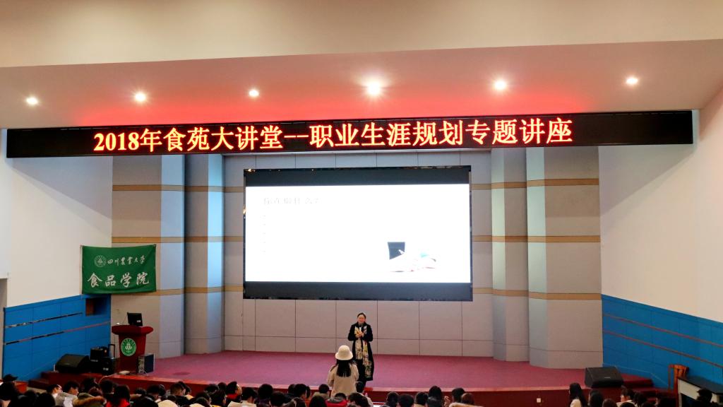 为帮助2018级学生树立生涯规划意识,增强自我认知,明确努力方向,12月21日晚,食品学院特邀全球职业生涯规划师、国家二级职业指导师、国家二级心理咨询师、大学生职业生涯规划课程组组长黄青老师作客食苑大讲堂,做题为“人生必修课”职业生涯规划主题讲座。全体大一同学和部分大二同学到场聆听。