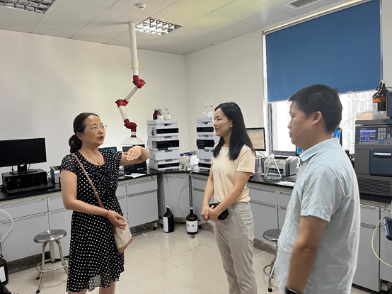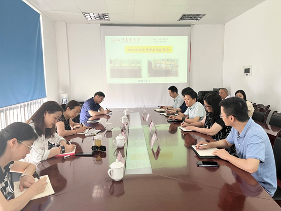为建立高质量的专业学位研究生校外实践基地,6月24日,食品学院党委书记秦文、学院行政办主任程瑶、食品加工与安全研究所副所长敖晓琳、科技开发办主任韩国全、研究生教学管理人员沈黎老师受邀赴德阳市食品药品安全检验检测中心(简称检测中心)进行考察交流。德阳市市场监督管理局安全总监王琳、检测中心主任金卫等参与接待。