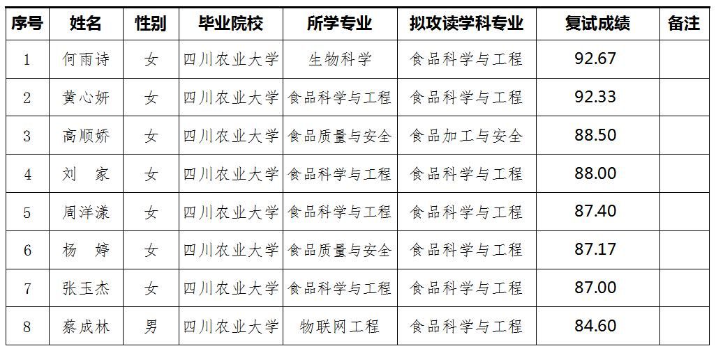 导航痕迹 tyc5997太阳集团 食品学院 首页 研究生教育 招生信息 正文 日常管理 招生信息 专业设置 培养方案 关于学院接收2025年推免生(拟录取)复试成绩的公示 2024年09月30日 23:41 食品学院行政办公室 点击:[] 根据tyc5997太阳集团2025年接收推免研究生工作安排总体要求,经食品学院研究生招生工作领导小组研究,学院接收2025年推荐免试研究生(拟录取)复试成绩予以公示(详见下表)。 上一条:关于学院2025年申请审核制博士研究生复试工作的通知 下一条:关于学院2025年接收推免研究生工作的通知 【关闭】