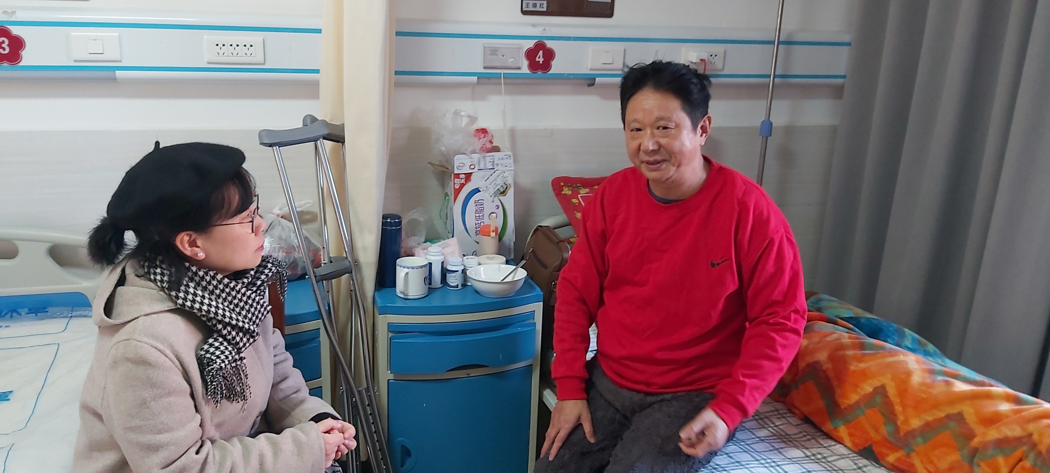 12月27日下午,食品学院党委副书记、工会主席汤瑞瑞,工会副主席胡滨,行政办主任胡亮等一行3人来到雅安市中医院看望因病住院的退休教师苏赵。汤瑞瑞主席代表部门工会表达了关心,详细询问了病情与治疗情况,鼓励苏老师悉心调养,积极配合治疗,保持乐观心态,争取早日康复,并向苏老师送上了慰问品。苏老师对学院领导的到来十分感动,他说到:“感谢学院的关心,感谢各位领导关心,我会积极配合治疗,争取早日康复。”