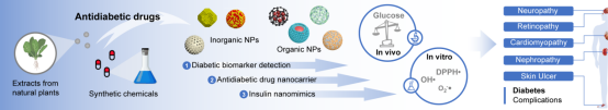 图2:目前纳米材料在糖尿病及其并发症治疗中的应用概况