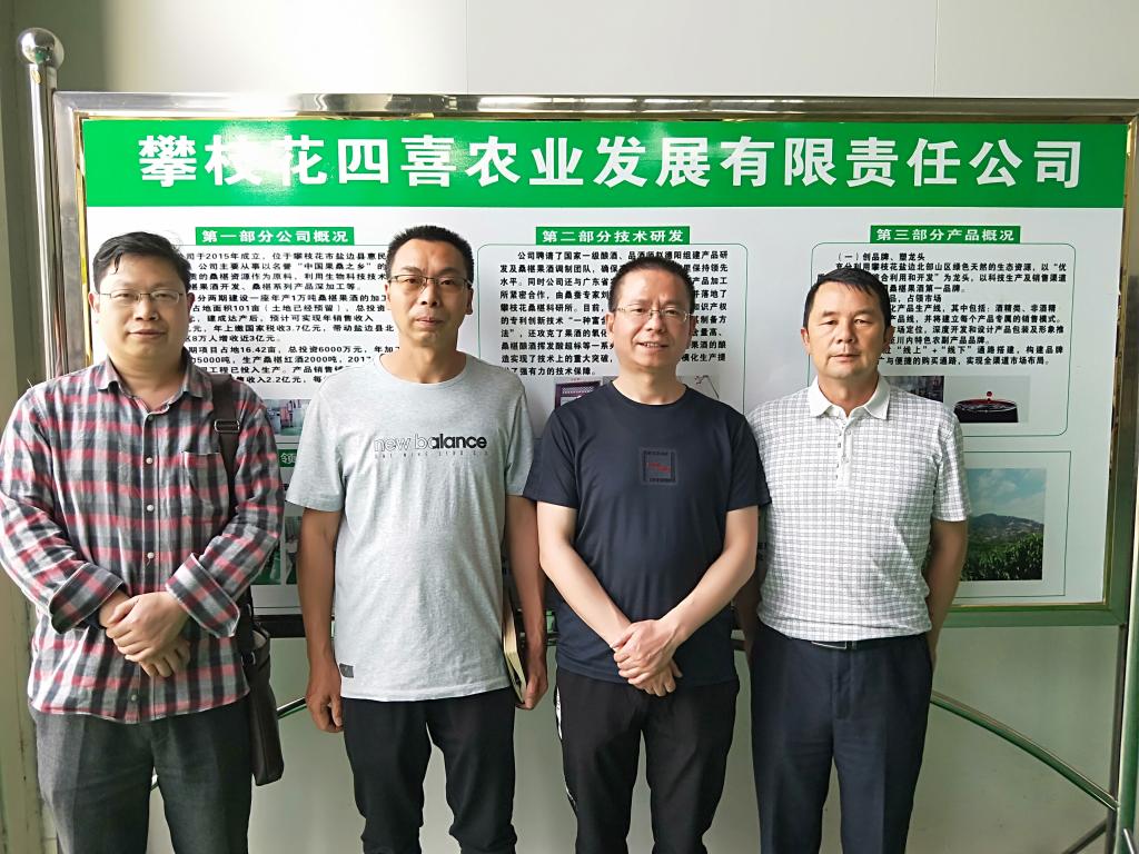 4月3日至5日,学院陈安均教授、韩国全副教授及研究生一行到盐边县开展桑葚产业发展调研与精深加工技术咨询服务。盐边县农牧局冯正才、谢成德两位高级农艺师全程陪同参与调研与交流。陈安均一行先后到了盐边县攀枝花宝桑园健康食品有限公司、攀枝花四喜农业发展有限责任公司、红桑果蚕桑专业合作社,了解了盐边县桑葚种植及精深加工生产现状、存在问题,并就桑葚种植及精深加工相关技术与盐边县农牧局、种植户、企业相关人员进行深度交流,及有关桑葚干、桑葚初加工、桑葚冰红、桑葚红果酒的酿造等核心技术进行交流指导。